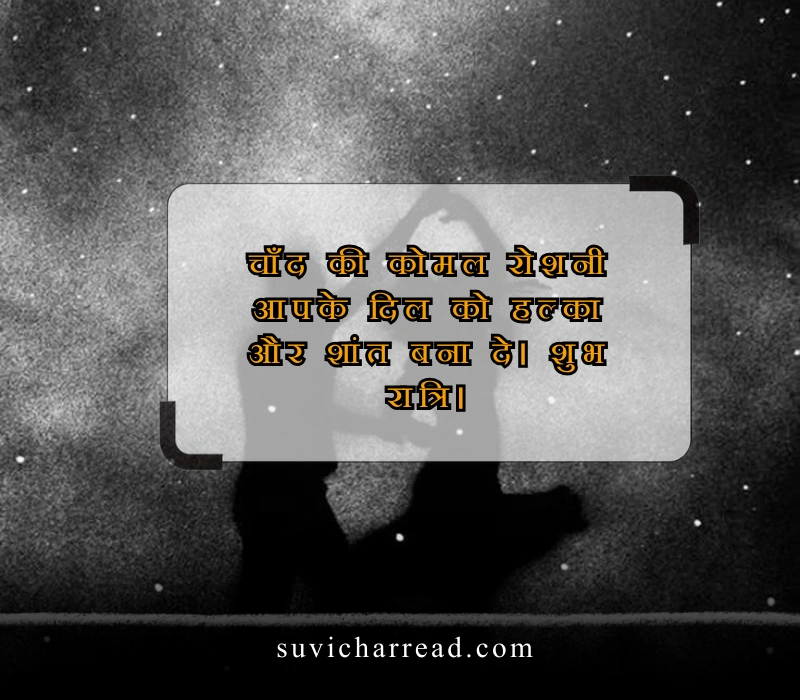 SuvicharRead में आपका स्वागत है, जहाँ हर शब्द दिल से जुड़ता है और हर भावना को खूबसूरती से अभिव्यक्त किया जाता है! यहाँ हम आपके लिए ऐसे संदेश लाते हैं जो दिल को छू जाएँ, और आज हम आपके लिए कुछ खास—Good Night Wishes लेकर आए हैं, जो सुकून, अपनापन और प्यार से भरे हुए हैं। हमारे कई पाठक बताते हैं कि रात को भेजा गया एक छोटा-सा संदेश रिश्तों में मिठास लाता है, मन को शांत करता है और चेहरे पर मुस्कान छोड़ जाता है।